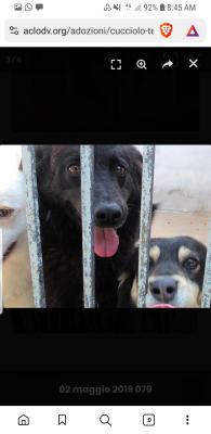 Si trova in un canile privato convenzionato in provincia di Frosinone, adottabile in tutto il Centro e Nord con visita di preaffido, moduli adozione, disponibilita’ a mantenere i contatti ed al postaffido.
