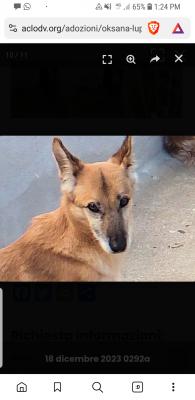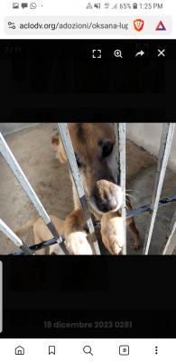Dopo 6 anni sempre vissuti senza mai uscire da un box di cemento ora è sciupata ed invecchiata. Oksana è una bella femminuccia fulva vagamente lupetta di taglia contenuta, sui 17 kg.