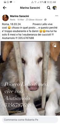 Povero Lello vive così, chiuso in quel posto … esce dal box del canile solo raramente e quando accade e' dolcissimo, va al guinzaglio, vuole partecipare e interagire con le persone, si mette a pancia all'aria per ricevere le coccole..