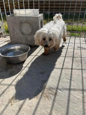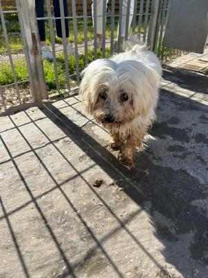 MALTESE DI 12 ANNI, 5 Kg, COMPLETAMENTE CIECO, VIVEVA IN FAMIGLIA MA NON LO TENEVANO BENE.