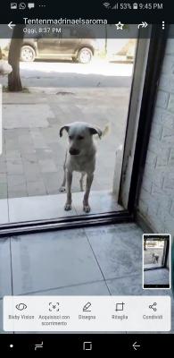 CAGNOLINO ABBANDONATO SOSTA DAVANTI ALLA PORTA IN CERCA DI CIBO.