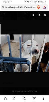 Da quell'unica uscita sull'erba sono passati ben 2 anni e Tommaso quando vede qualcuno avvicinarsi al suo box si aggrappa alle sbarre, mette le zampe e il musetto fuori, gli occhi supplichevoli, per raggiungerci.
