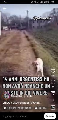 Prov. Bergamo. Blanko, golden retriever bianco di 14 anni, dal 15 dicembre non avrà più nemmeno un posto in cui stare. Va d'accordo con le femmine e ha convissuto con un coniglio. Non è castrato e soffre di dermatite. Cerca urgentemente almeno uno stallo. Whatsapp Federica 3923270855