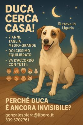 Duca è stato trovato a 2 mesi in una discarica a cielo aperto, tra ferraglie e pozzi aperti… Lo abbiamo salvato allora… e da 7 anni cerchiamo una vera salvezza: una famiglia. È pacato, equilibrato, silenzioso, socievole con persone, cani e persino gatti Per info e adozione: 339 3702761 (anche WhatsApp) gonzalespiera@libero.it » maidasoli@blu.it »