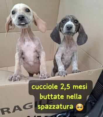 CUCCIOLE 2 MESI E MEZZO TAGLIA MEDIA Ora sono in canile… Le hanno buttate in quella scatola chiusa e messa vicino a un cassonetto. Un ragazzo le ha sentite piangere ha chiamato i vigili e le hanno portate in canile. Sono 2 scricciole scheletriche, erano affamate e impaurite. Chissa che fine hanno fatto fare alla loro mamma. Un cucciolo non dovrebbe mai soffrire. Hanno bisogno di una famiglia. Adottabili centro nord Italia.