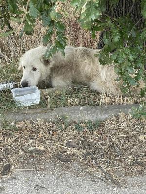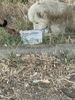 Ha trovato un pastore maremmano, magrissimo,mal messo, con zecche e pulci, con ferite, che cammina a stento.