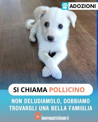Pollicino cerca casa nel Lazio! Lui è Pollicino, un cucciolo di appena 2 mesi, futura taglia medio-piccola. Un piccolo tesoro che merita di conoscere solo amore. La sua famiglia d’origine ha tre cani di grossa taglia e, per proteggerlo, oggi vive in un kennel… ma non è questa la vita che sogna. Pollicino aspetta una casa sicura, un cuore grande e delle braccia pronte ad accoglierlo. Si trova a Frosinone (Lazio)