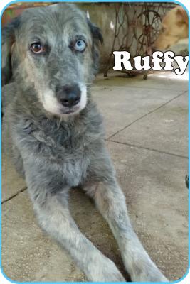 RUFFY...""anni e anni fatti di inverni e estati dentro fredde sbarre Un occhio azzurro, un cuore grande aspettando invano...il muso grigio, ma lo sguardo dolce e vivo ricorda il tempo lontano quando il mondo era amore vero Un occhio guarda il cielo azzurro, l altro guarda sperando un sorriso e un abbraccio Un giorno, forse, un passo nuovo,un altra vita da scoprire, e l occhio azzurro finalmente vedrà l amore"" Ruffy oltre 10 anni ..non fatevi ingannare dalla età è agile e vivace..buono con tutti anche con i gatti, 25 kg circa, taglia medio grande