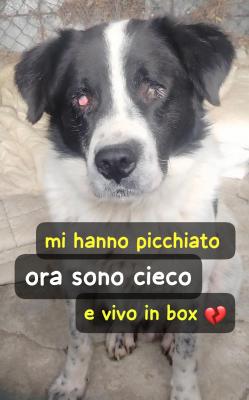 ANDREA 4 ANNI 30 KG CIECO PERCHE’ COLPITO ALLA TESTA CON UNA PALA Andrea fin da piccolissimo ha vissuto per strada. Randagio senza famiglia… Un pomeriggio, era agosto, stremato dal caldo cerca riparo dal sole sotto un ulivo. Il contadino lo vede, Andrea rimane fermo e lo guarda sperando che gli portasse anche solo un po’ d’acqua, era felice di vedere qualcuno, finalmente lo avrebbero aiutato. Non poteva sapere che quel contadino lo avrebbe picchiato alla testa con una pala lasciandolo agonizzante sotto il sole. Quel pomeriggio ha perso la vista. Cercava solo un po’ d’acqua. Ora vive in un box. Una volta al giorno per 40 minuti esce e vi devo dire una cosa… La ragazza che non potendolo portare a casa sua lo tiene in questo box di fortuna nella campagna del nonno, mi ha detto che nel box non fa nemmeno i suoi bisogni. La aspetta… Andrea è un cane dolcissimo, ha conosciuto la parte più cattiva dell’uomo… Ora merita di essere felice. Buonissimo con le persone. Compatibile con altri cani, meglio femmine non dominanti. Adottabile centro nord Italia.