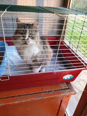 E' un gatto bellissimo, un simil incrocio norvegese, ma anziano, il veterinario dice che avrà almeno 11 anni.