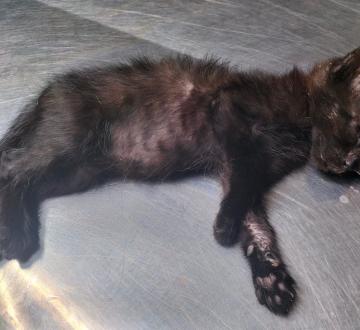 La fame e la sete la stavano portando alla morte. Invisibile agli occhi di tutti, nessuno si è fermato a darle un po' di cibo e acqua fresca. Non può restare in strada perché non ha possibilità di sopravvivenza. Ha due mesi e mezzo ed è una femmina.