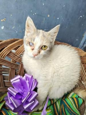 Oggi vi presentiamo Bia una bellissima micetta di circa 4 mesi. La vita non è stata semplice per lei, è stata trovata in strada in fin di vita e con un occhietto infetto...recuperata e curata ha però perso l'occhio. Bia è una gattina molto timida e paurosa, merita una casa sicura e tanto tanto amore per dimenticare ciò che ha vissuto. Malgrado è cieca da un occhio come tutti i gatti riesce ad essere autonoma ed attiva, ama giocare con le palline. Si affida con chip, vaccini, vermifugo ed antiparassitario; si trova a Marsala ma per buona adozione arriva ovunque.