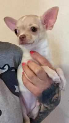 Bellissima cucciola femmina chihuahua pelo corto, crema, portatrice di pelo lungo, blu, lilac e cioccolato. Età 5 mesi, attualmente corretta. Si cede sverminata, con ciclo vaccinale completo (Ceppi + L4), visita veterinaria con analisi feci e test giardia eseguiti appena prima della consegna, pedigree Enci, contratto con garanzia La cucciola ha un carattere stupendo, è molto vispa, esuberante, ben socializzata con le persone e con gli altri cani. Abituata alla traversina. Possibilità di consegna con rimborso spese di viaggio.