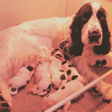 Splendida cucciolata di Cocker Spaniel Inglese pluricolore, selezionata genealogia, nati il 9/04/2020 in vendita in provincia di Ancona. I genitori sono entrambi visibili, testati da malattie genetiche (Hd, Pra, Nf, Patella, Aon). I cuccioli sono allevati in casa con cura e dedizione, vivono con i genitori e verranno ceduti dopo i 75 giorni di età, sverminati, vaccinati, microcippati, iscritti all'anagrafe canina e con pedigree Enci. Si offre e si richiede massima serietà. Contattare dalle ore 15,00 alle ore 19,00 solo se veramente interessati al seguente numero: 389/6906753