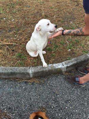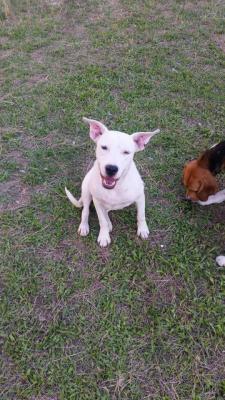 💗Bianca cerca casa 💗 Cucciola di 1 anno, simil dogo argentino, taglia medio-grande( circa 25kg),dolce, affettuosa e remissiva... testata con bambini, ben socializzata con cani maschi e femmine... sterillizzata, chippata e con primi vaccini, si affida dalla Campania in su con controlli di pre e post affido a coloro disposti a darle il calore di una famiglia che non ha mai vissuto. Maria 3206394512