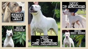 Stupenda cucciolata di Dogo Argentino di altissima genealogia nati il 5 maggio 2020. Figli di Goemon Guayota e Antigua Guerra Sangre Real, frutto degli incroci tra i campioni selezionati dalle più prestigiose linee di sangue al mondo !!!! ( Diavoli della Mandragora, Del Pirata Valente, Del Picadero , Verdes Pampas , De Angel o Demonio, Corazon Gaucho, Casa de Marchesi, Fuerza Blanca, de la Vieja Diana, Ackon Cahuak , Divina Fortitudo , Casa dei Marchesi , Del Talamochita , Del Tolkeyen). Con svariati campioni di bellezza italiani , esteri , europei , internazionali , argentini , brasiliani , mondiali !!!!! , riproduttori ,  sociali ecc .... Nipoti diretti dei pluripremiati campioni del mondo Pampa Verdes Pampa , Pampero Ackon Cahuak , Talisman de la Vieja Diana , e del dogo più titolato di sempre Calacho's Verdes Pampa ...ecc... Allevati da veri amatori della razza con esperienza trentennale . Genitori visibili entrambi in loco. I cuccioli verranno ceduti sverminati con microchip, vaccinazioni e prestigiosissimo pedegree. Disponibili 3 femmine e 5 maschi. Euro 800 Tel. 3518250718 Andrea e Chiara