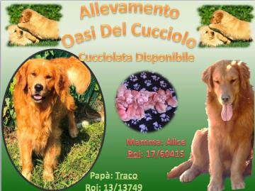 Allevamento OASIDELCUCCIOLO ha disponibili bellissimi cuccioli di Golden Retriever, nati il 01 Settembre 2018, impazienti di donarvi tantissime coccole e amore. La mamma (Alice) e il papà (Traco) sono entrambi perfetti...esenti da displasia e oculopatie, naturalmente tutto con certificati ufficiali disponibili anche sul nostro sito internet Verranno consegnati al 60' giorno con pedigree, vaccinazione e tripla sverminazione, micropic (affrettatevi!!!). Cosa aspettate venite a trovarci senza alcun impegno, siamo disponibili anche durante i fine settimana... Aspettiamo solo Voi!!!! Non avete la possibilità di venire a ritirarli?? Nessun problema, diamo anche la possibilità di consegna a domicilio...in tutta Italia, Visitate il nostro sito per vedere le foto dei cuccioli Visitate il nostro sito internet e la nostra pagina Facebook Prezzo fatturabile e dilazionabile.