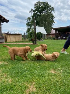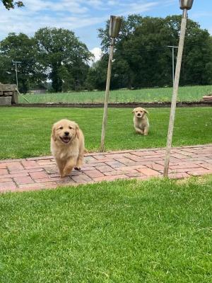 sono disponibili dei bellissimi e dolcissimi cuccioli di golden retriever. sono due cucciolate: una e' pronta subito in quanto ha compiuto i due mesi di eta' da poco, l'altra e' nata da pochi giorni e quindi e' solo visibile e prenotabile. i genitori visibili hanno ottimi pedigree con le esenzioni delle oculopatie e displasia delle anche e dei gomiti. ogni cucciolo ha il libretto sanitario con le sverminazioni e vaccinazioni eseguite per l'eta'.iscrizione e microchip inserito. vi verranno fornite tutte le indicazioni e le crocchette per i primi giorni.