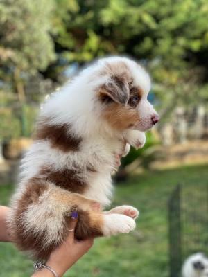 Allevamento con affisso riconosciuto enci-fci ,dispone di splendida cucciolata di Australian Shepherd. Genitori con un bellissimo carattere e pedigree, testati per tutte le patologie ereditarie, con test genetici, visite oculistiche fsa, lastre ufficiali per la displasia. e visita cardiologica. Inoltre verranno ceduti con ciclo svermazioni completo dopo i 60 giorni, vaccini, kit puppy, pedigree e certificato di buono stato di salute. I cuccioli nascono e crescono in casa per cui totalmente abituati ad un ambiente domestico, gatti, bambini.. POSSIBILITA' DI CONSEGNA IN TUTTA ITALIA. X INFO AL 3294430164
