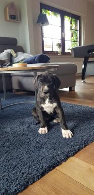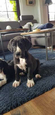 Alano Blue bianco neri occhi azzurri (nello specifico due femmine e un maschio) e 3 grigi (2 occhi azzurri e uno marrone), figli di genitori di altissima genealogia e Papà campione internazionale . Si cedono con tripla sverminazione, due vaccini, libretto sanitario, microchip, pedigree ENCI.