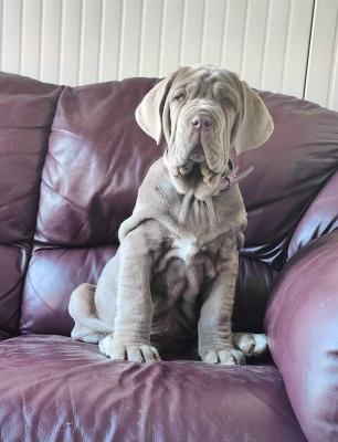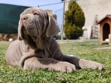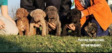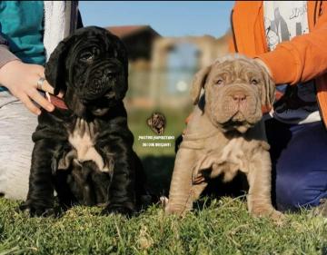Mastino Napoletano cucciolo nero nato il 17/05/23 e cuccioli grigi nati il 04/06/23, da allevamento con affisso Enci ventennale, vengono consegnati dai 65 giorni con microchip, vaccinazioni, pedigree Enci, socializzati con bambini, cani e gatti. I cuccioli sono nati da parto naturale e sono cresciuti con allattamento naturale in casa con la loro mamma e con la nostra famiglia. Linea di sangue femminile visibile fino alla trisnonna, padri di nostra proprietà. Gradite visite su appuntamento. Ci troviamo ad un'ora da Torino, Milano e Genova.