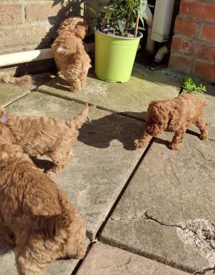 Cuccioli di barboncino giocattolo. Dal rosso all'albicocca scuro 3 femmine e 1 maschio disponibili. Abituato a bambini, altri cani e rumori domestici e in fase di addestramento al vasino che sta andando bene. La mamma è una ragazza molto affettuosa e amichevole ed è albicocca, non è registrata a KC. Papà è rosso ed è molto comico e ama giocare, è registrato a KC e si possono vedere i documenti sanitari dei genitori.