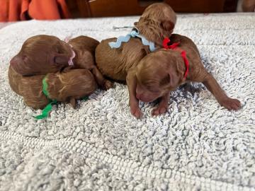Disponibili cuccioli di barboncino Toy Red con genitori Toy red misurazione ENCI. I genitori sono di linee russa e spagnola, hanno pedigree e test genetici e della lussazione della rotula tutti negativi. I certificati verranno forniti ai nuovi proprietari. I cuccioli verranno ceduti con pedigree microchip,doppia vaccinazione, libretto sanitario. I cuccioli sono allevati e coccolati in famiglia.