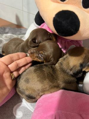 Disponibili bellissimi cuccioli di bassotto kanincken pelo corto color cioccolato e Arlecchino genitori visibili, disponibili per i primi di novembre consegno vaccinati sverminati con libretto sanitario ,abituati alla traversina