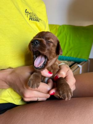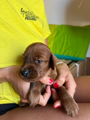 Cuccioli di Setter Irlandese zona Pesaro, Marche, cercano una famiglia che li ami. No catene, no box. Solo vita da giardino, lunghe passeggiate e tanto affetto. Solo per veri amanti di animali.