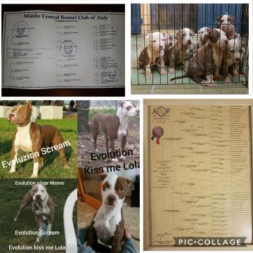 Vendo cuccioli di American Pitbull Terrier figli di Evolution Blood Line Carving Scream per Evolution Blood Line kiss me Lola.i genitori dei cuccioli derivano dell'allevamento Evolution Blood Line. Verranno ceduti dal 12 luglio con primo vaccino,microchip,ciclo vermifugo e pedigree. Per info contattare i seguenti numeri 3381771624 Sabrina oppure 3935663023. No perditempo e se davvero interessati