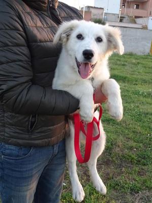 Fiocco, maschio, 4 mesi circa, taglia medio grande. Si trova un puglia ma adottabile in tutto il nord e centro Italia dopo incontro conoscitivo. In ordine con chip e vaccini. Conttatare il 3406054524 solo su whatsapp.