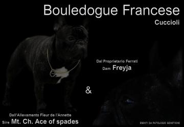 Sono disponibili prenotazioni per cuccioli di bouledogue francese dall'accoppiamento di Freyja e Ace of Spades. Previsione parto per il 13 Settembre 2019 e i cuccioli saranno ceduti al nuovo proprietario entro il terzo mese di vita e comunque non prima dei 75gg. Perché prenotare in anticipo con noi un cucciolo di Bulldog francese? Perché risparmi e perchè di veri appassionati come noi ce ne sono pochi e la richiesta è molto alta per linee di sangue di un certo livello. Si annovera in questa linea di sangue campioni italiani, internazionali e persino mondiali del calibro di Brabus a'vigdors, zenith de la parure, lo stesso Ace of Spades e tanti altri. Questo non significa avere solo il privilegio di prenotare cuccioli importanti, ma soprattutto avere piu affidabilità nell'acquisto, scongiurando con maggiore probabilità malattie genetiche che questi cani potrebbero essere portatori. Infatti saremo in grado di consegnare tutte le prove di depositi DNA e attestazioni varie di buona salute dei cani. Cederemo i cuccioli con tutti gli adempimenti previsti di legge, tipo vaccinazioni, microchip e attestato di cane di razza pedigree ENCI, infatti il decreto legislativo n. 529/92 stabilisce che non è consentita, in nessun caso, la commercializzazione di animali senza pedigree come “animali di razza”, ecco perché è importante comprare solo cani di razza da chi garantisce il pedigree. Cosa consigliamo noi a chi decide di possedere questa bellissima razza? Spendere il giusto per un cane VERAMENTE selezionato e con molta probabilità risparmiare col tuo veterinario di fiducia, anziché rischiare con cuccioli esenti da tracciabilità, dunque non saprai mai se hanno malattie ereditarie, il che sintetizza a volte spese veterinarie molto costose. Ricordati che il french bulldog è un cane che adora stare con il suo proprietario, ama i bambini e passeggiare, per cui se hai poco tempo da dedicare all'animale, te lo sconsigliamo vivamente. Per maggiori info contatta Andrea al 3294463226