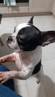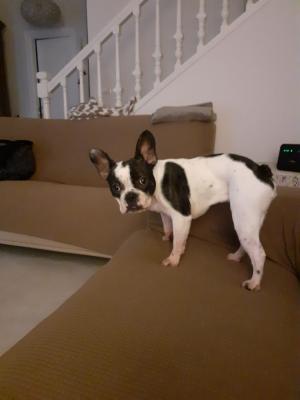 Regalo cagnolina di bouledogue francese di 3 anni. Bianca e nera di nome Zoe.