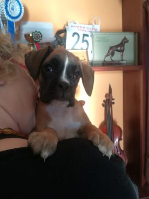 All.amatoriale con oltre 20anni di esperienza.Disponiamo di bellissima cucciola di boxer fulva molto tipica,nata il 26 novembre importanti linee di sangue,genitori controllati e visibili in allevamento. Verrà ceduta con:ciclo vaccinale completo,4 sverminazioni,chip ed iscrizione Asl canina,pedigree Enci alta genealogia già in possesso,certificato veterinario che ne attesta la salute e puppy kit contenente crocchette per fare il cambio alimentazione in modo graduale,copertina tenuta a contatto di mamma e fratellini per dare tranquillità nell'inserimento nella nuova famiglia e un giochino. Molto dolce ed affettuosa adatta anche per chi ha bambini,con i quali legano moltissimo. Garantiamo il nostro supporto per tutta la vita