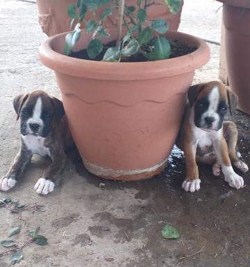 Splendita cucciolata di boxer con pedigree di Alta genealogia. 4 tigrati e 2 Fulvi.I cuccioli saranno disponibili da fine agosto e verranno consegnati con il libretto sanitario,primo vaccino,sverminati e svezzati.Genitori visibili in mio possesso x info o altre foto/video tel. 3381962029