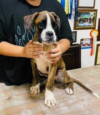 Disponibile meraviglioso cucciolo di boxer. Nato e cresciuto in ambiente domestico e abituato ai bambini. Verrà ceduto con pedigree ufficiale ENCI, sverminato e vaccinato dopo il settantesimo giorno. Genitori e cuccioli visibili presso il nostro allevamento amatoriale. Per appuntamento contattare solo se realmente interessati e amanti della razza. 3516521415