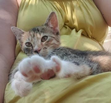 ANGELINA.......è una gattina di circa 3 mesi e cerca urgentemente la sua mamma umana. È una splendida tricolore coccolosa, trattorino di fusa....nelle sue mille smorfie buffe 😊