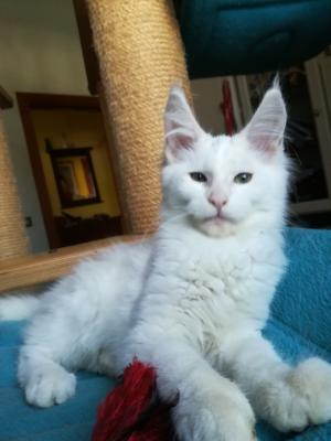Allevamento Anfi cede ultimi due maine coon bianchi, maschi. Bellissimi, molto dolci, affettuosi, curiosi e giocherelloni, vengono ceduti da subito con Pedigree anfi (da pet, il cucciolo deve essere sterilizzato, no breed, no accoppiamenti), libretto sanitario completo di vaccinazioni e sverminazioni, passaggio di proprietà, contratto di vendita, copie dei test dei genitori, negativi a hcm, pkd, pkdef, sma, fiv, felv, fcov. Ulteriori informazioni via mail!