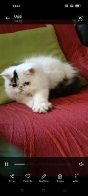 Cucciolo di gatto persiano femmina di colore Brown arlecchino, 4 mesi, verrà ceduta sverminata vaccinata test pkd filv e felv negativi, pedigree Enfi. Il cucciolo è abituato all'utilizzo della lettiera a vivere in casa a bambini e altri animali.
